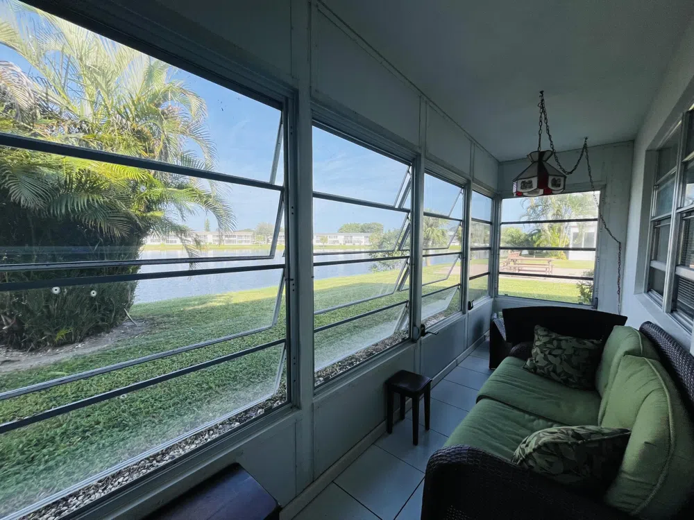 ENJOY! GROUND FLOOR CORNER WITH AMAZING WATER VIEWS. 2 BED 1 1/2 BATH UNIT RENTABLE FROM DAY OF PURCHASE. TASTEFULLY FURNISHED, UPDATED BATHROOMS TILE FLOOR THROUGHOUT CENTRAL AIR. ASSOCIATION HAS PRIVATE SITTING AREA. WELL MANAGED ASSOCIATION. VERY CLOSE TO THE KENT POOL.Roomy closets (one walk-in), laundry room, assigned parking spot plus visitor parking available; local bus for errands/shopping both within & outside the village. COME AND ENJOY RESORT STYLE LIVING IN THIS GATED COMMUNITY FOR ADULTS 55+. Clubhouse with theater, shows, movies, craft and card rooms, billiards, aerobics, yoga, and dance classes. GREAT LOCATION: close to shops, restaurants, PBI airport and beaches.