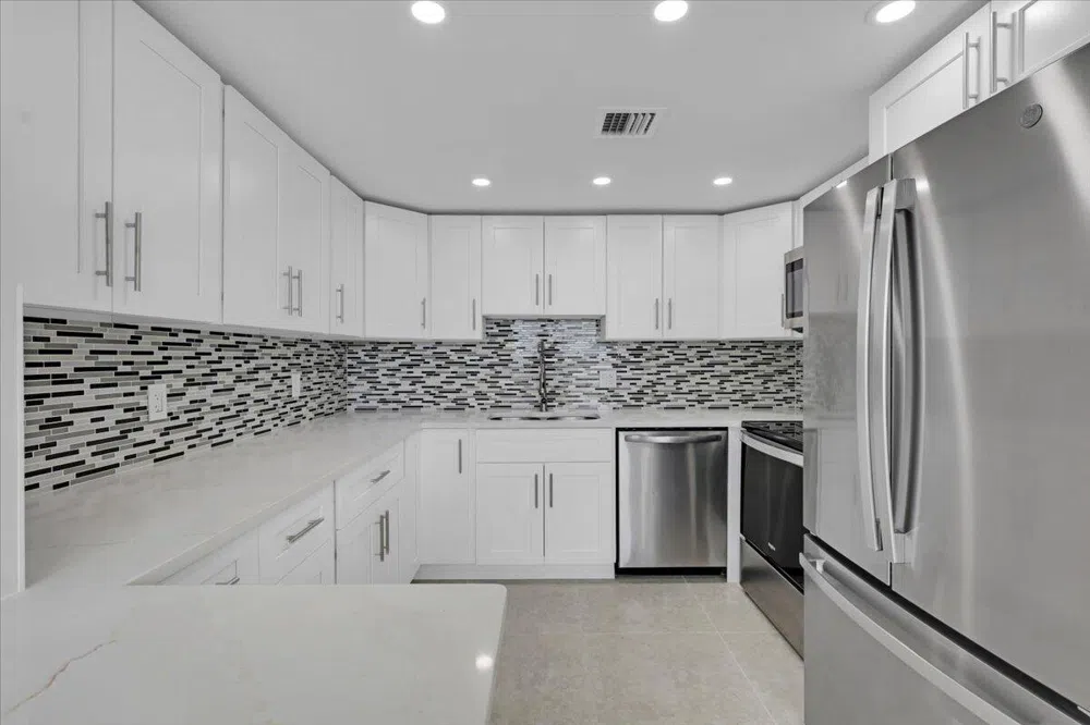 WOW! DON'T MISS OUT ON THIS EXCEPTIONAL 2 BED 2 BATH NEWLY RENOVATED LARGE LUXURIOUS PENTHOUSE. IN A VERY WELL KEPT, WELL FUNDED ASSOCIATION. STUNNING KITCHEN COMPLETE WITH NEW, NEVER USED STAINLESS STEEL APPLIANCES. LARGE NEUTRAL TILE THROUGHOUT. 2 BEAUTIFUL FULL BATHS. GREENBRIER HAS ITS OWN PRIVATE POOL.SHORT WALK TO WALGREENS AND THE CLUBHOUSE. .Roomy closets (one walk-in), 2 laundry rooms, assigned parking spot plus visitor parking available; local bus for errands/shopping both within & outside the village. COME AND ENJOY RESORT STYLE LIVING IN THIS GATED COMMUNITY FOR ADULTS 55+. Clubhouse with theater, shows, movies, craft and card rooms, billiards, aerobics, yoga, and dance classes. GREAT LOCATION: close to shopping.